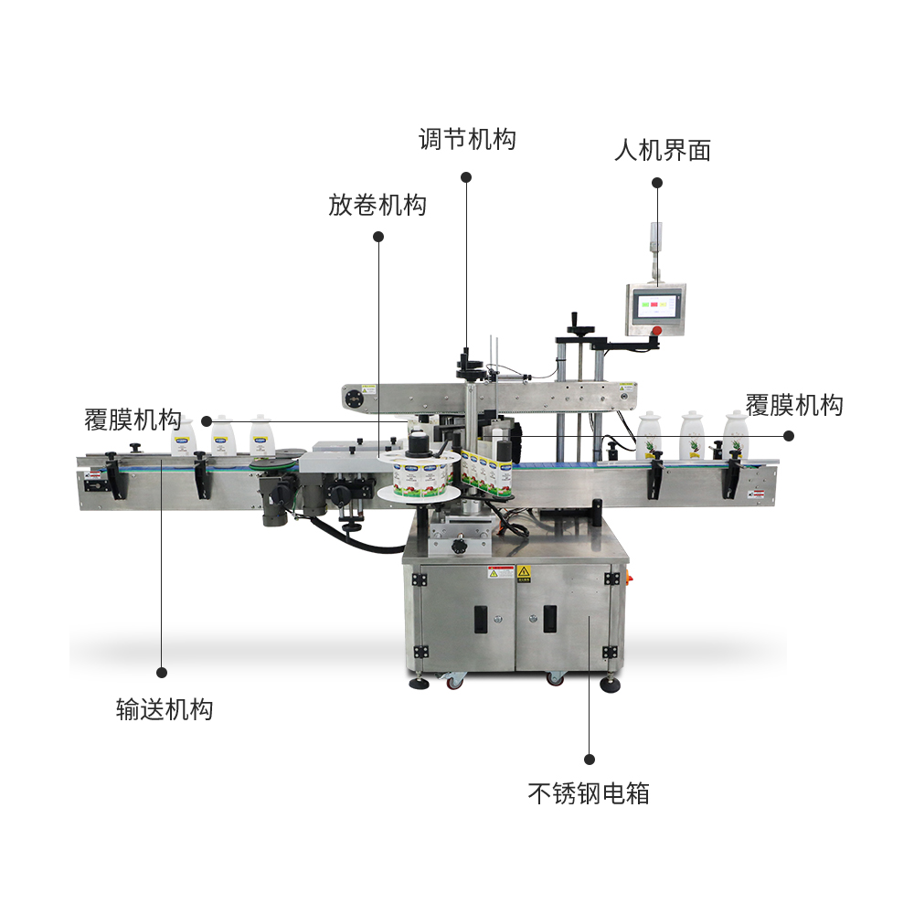 ◆ 配置兩重覆標(biāo)機(jī)構(gòu),首次保證貼標(biāo)精度,二次擠壓式覆標(biāo),有效消除氣泡和保證標(biāo)簽頭尾處貼緊;